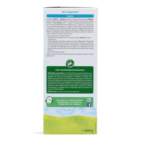 Made with clean, Demeter-certified organic ingredients and no GMOs, Holle Stage 2 is gentle and easy to digest. The parent Holle Bio 2 Folgemilch reviews consistently praise its smooth transition from Stage 1 and excellent tolerability. It's a trusted choice as the sole nutrition or alongside the first solids.