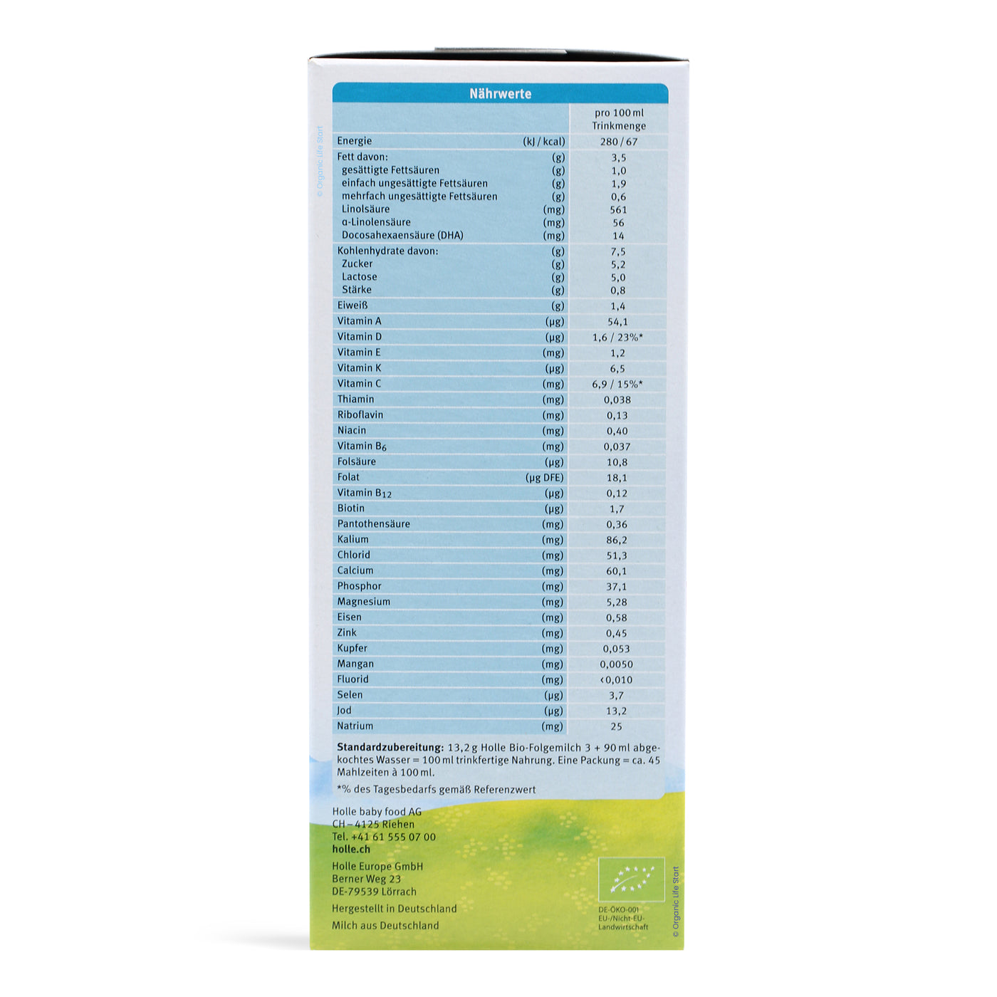 Proper preparation is vital for your baby's health and safety. Always follow the instructions printed on the Holle Stage 3 formula box: